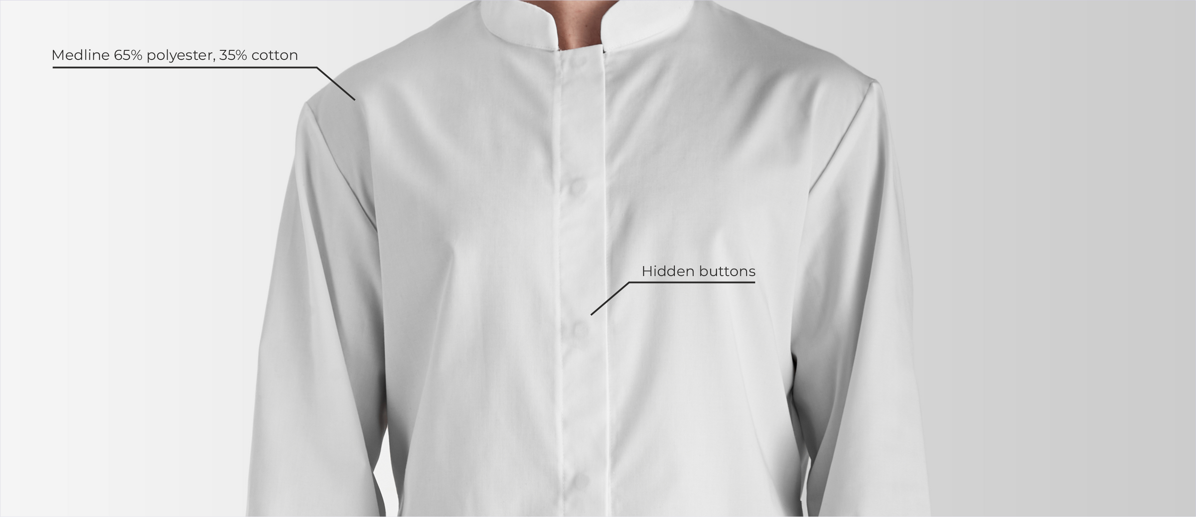 The Darwin gown offers a sophisticated and professional appearance, perfect for specialists across the medical, beauty, and hospitality industries.